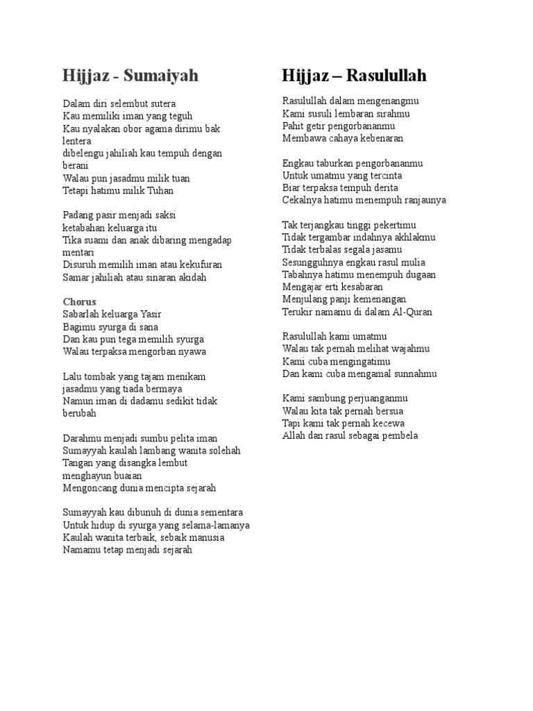 Lirik Lagu Sumayyah Oleh Kumpulan Hijjaz Pdf